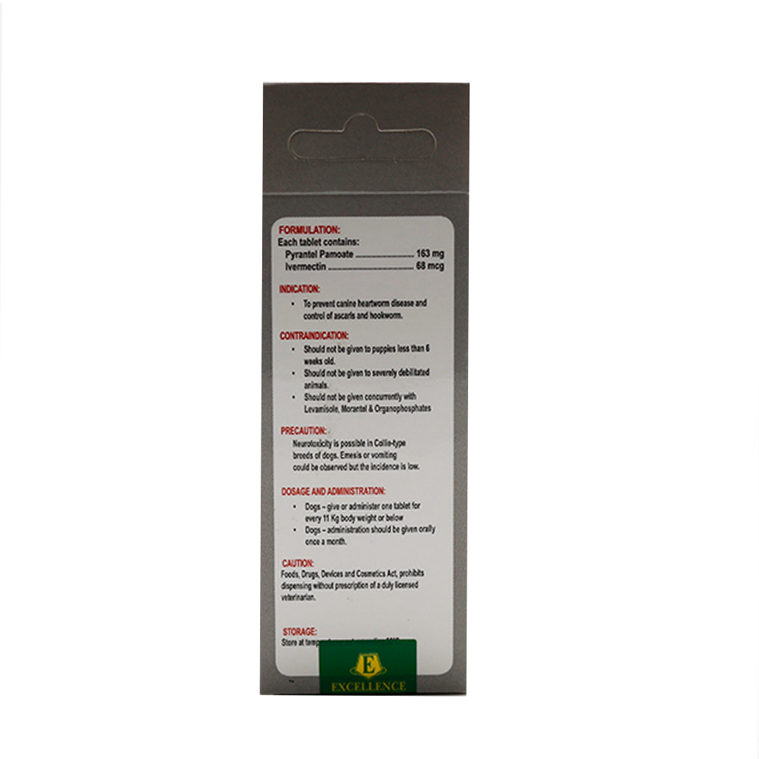 The combination of Pyrantel Pamoate and Ivermectin could act as a depolarizing, neuromuscular blocking agent that may cause paralysis of the susceptible parasites. Also this combination may increase the gamma amino butyric acid that may act as an inhibitory neurotransmitter and blocks the post-synaptic stimulation of adjacent neuron of susceptible parasites that could cause its paralysis and death.