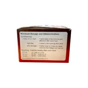 For Conditioning: 1 tablet of Voltplex KQ after feeding (Morning & Afternoon) on the last 2 days of conditioning and 1 tablet after morning feed day of the fight.